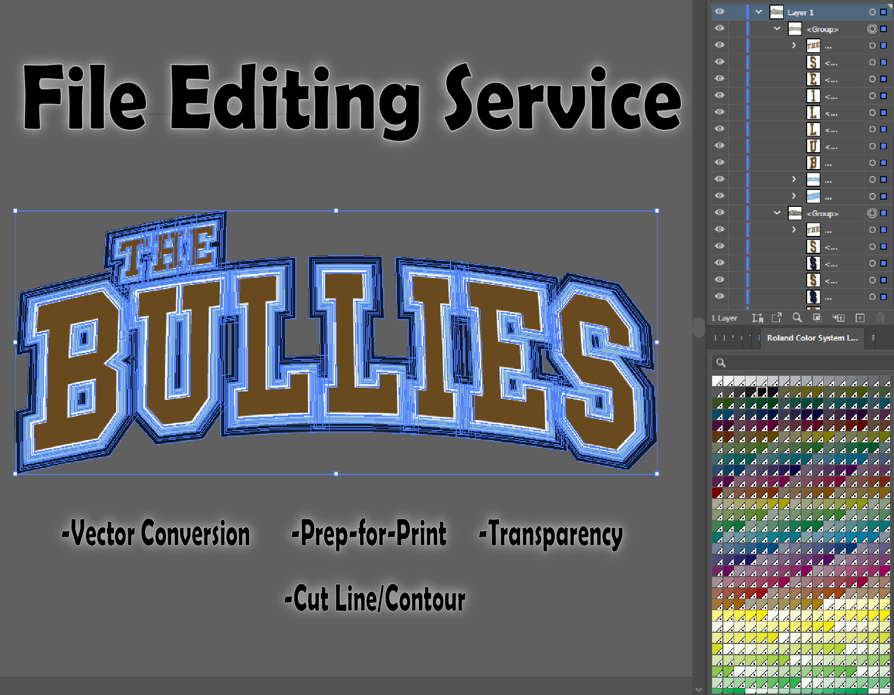 File Prep and Conversion Service to turn your created supplied files into print and cut ready objects.